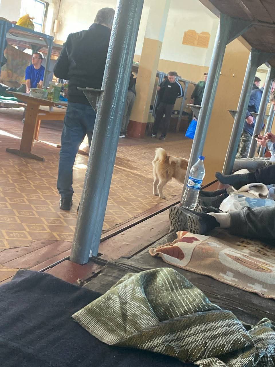 Также на одном из кадров видна собака. Комментатор фото утверждает, что в этом же ТЦК находится мужчина, которого мобилизовали вместе с животным.