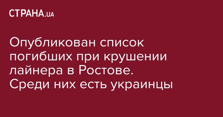 LifeNews опубликовал предварительный список пассажиров, которые находились на борту самолета Boeing 737-800 (рейс Дубай-Ростов), потерпевшего крушение в аэропорту Ростова-на-Дону. В списке 54 фамилии. Напомним, что по данным генконсула России в Дубае Гоча Буачидзе среди погибших - трое граждан Украины.