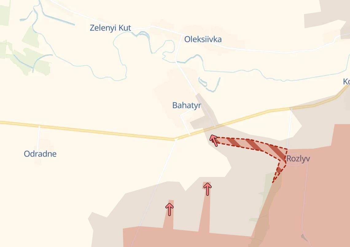Карта Deep State за минувшие сутки показывет продвижение РФ к Богатырю со стороны Разлива и расширение серой зоны в самой деревне.