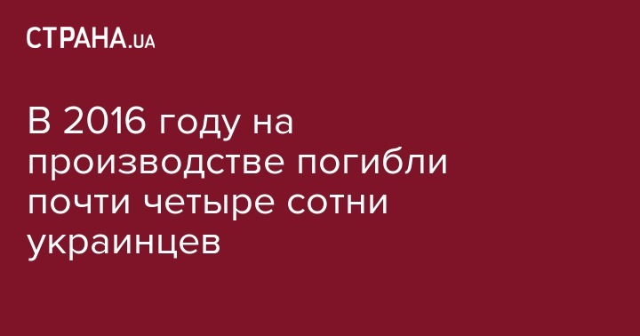 В Украине количество погибших на производстве в 2016 году составило 397 человек, то есть возросло на 6% в сравнении с показателями 2015 года, когда погибли 375 человек. Об этом сообщает "Интерфакс--Украина"