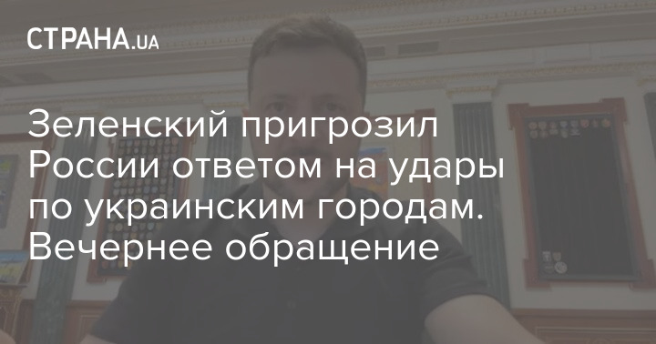 Зеленский пригрозил России ответом на удары по украинским городам. Вечернее обращение