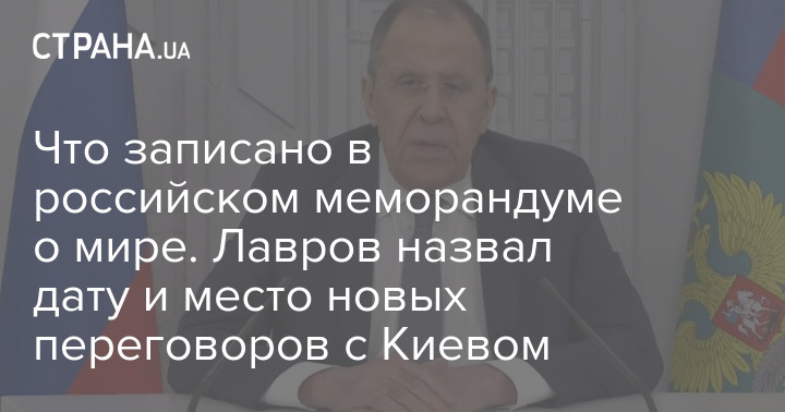 "Российская сторона, как и договаривались, оперативно разработала соответствующий меморандум, который излагает нашу позицию по всем аспектам надёжного преодоления первопричин кризиса. Наша делегация во главе с Мединским готова представить этот меморандум делегации Украины и дать необходимые пояснения в ходе второго раунда возобновленных прямых переговоров в Стамбуле в ближайший понедельник, 2 июня", – сказал Лавров.