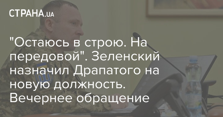 "Остаюсь в строю. На передовой". Зеленский назначил Драпатого на новую должность. Вечернее обращение