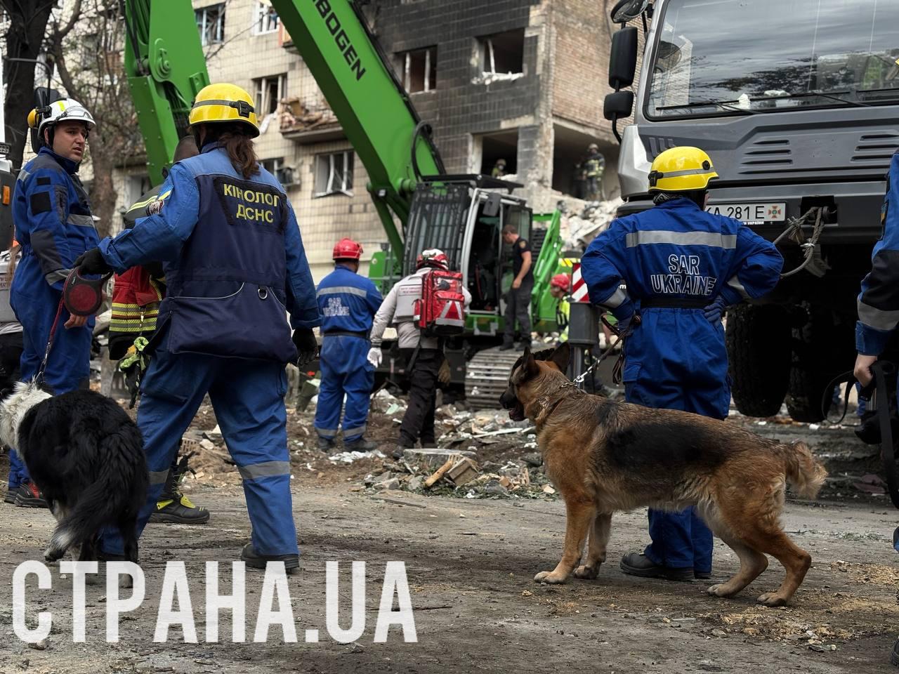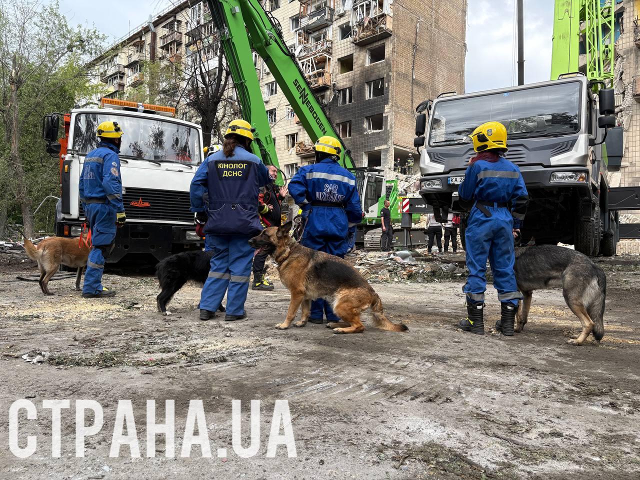 10.07 В Киеве на месте обрушения подъезда людей ищут кинологи с собаками.