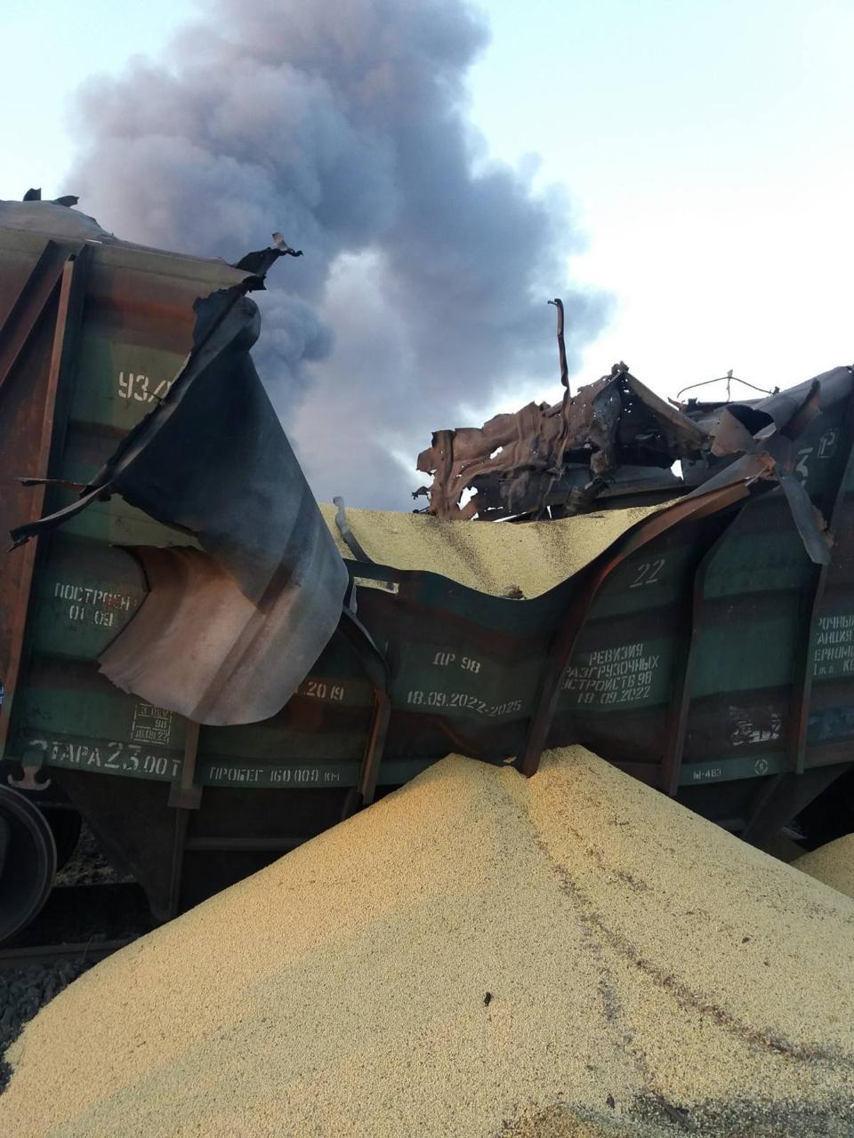 10.19 В Киеве ночной атакой повреждены вагоны с продовольствием, свидетельствуют фото "Укрзализныци".