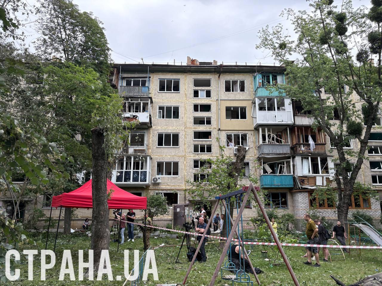 В Святошинском районе атака повредила жилой дом. Жилой дом и учебное заведение пострадали от атаки в Соломенском районе.