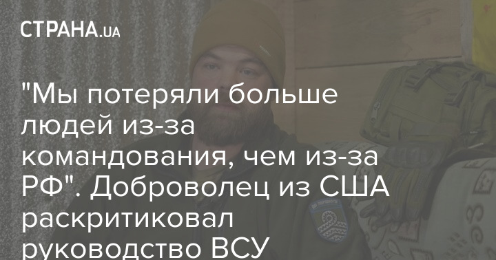 "Мы потеряли больше людей из-за командования, чем из-за РФ". Доброволец из США раскритиковал руководство ВСУ