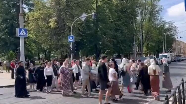 Прихожане УПЦ перекрыли дорогу в знак протеста.