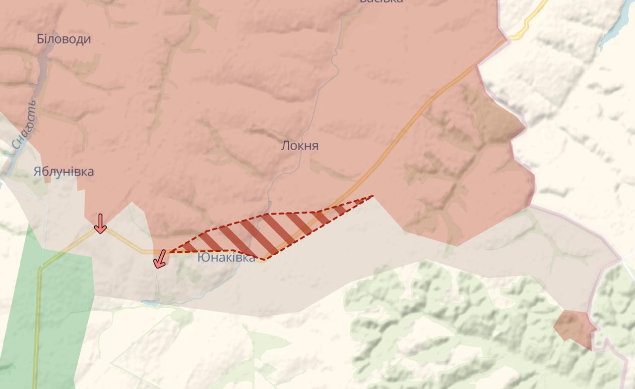 Армия РФ продвинулась в Юнаковке Сумской области, сообщает Deep State.