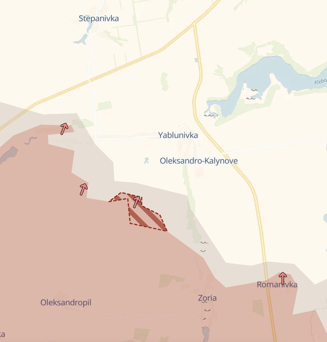 Также продолжаются бои за контроль над районом Шевченко – Бурлацкое – Привольное – Вольное Поле. В районе Вольного Поля зафиксировано продвижение российских штурмовых подразделений.