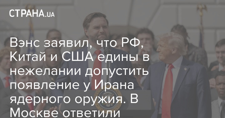 Вице-президент США Джей Ди Вэнс заявил, что Россия, Китай и Штаты едины в нежелании допустить появление у Ирана ядерного оружия.