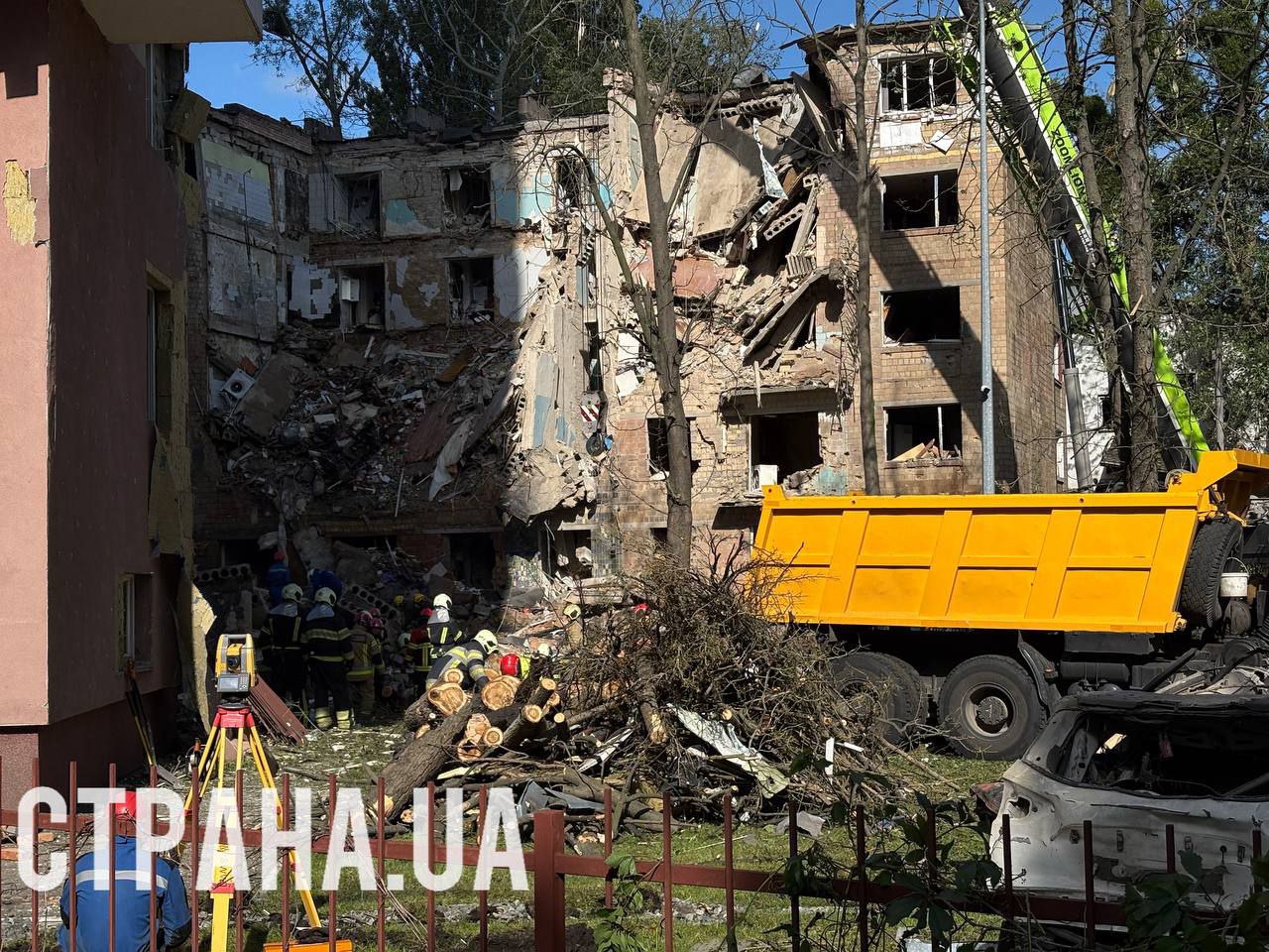 8.57 У дома в Шевченковском районе Киева, где после обстрела обрушился подъезд, продолжается разбор завалов.