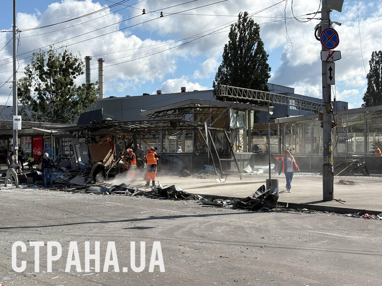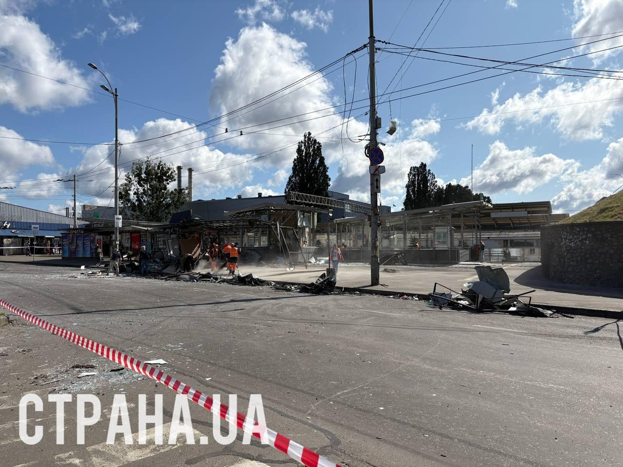 9.52 В Киеве после ночного обстрела значительные повреждения получил один из выходов метро в Святошинском районе и расположенные рядом МАФы.