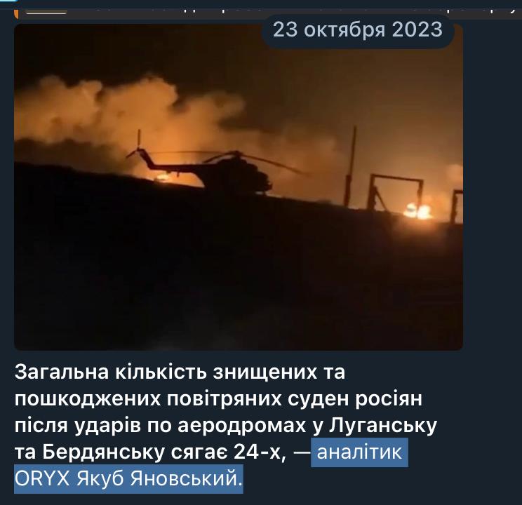16:15 В пабликах расходятся видео с якобы ударом по крымскому аэродрому "Кировское" и поражением российских вертолетов, о котором сегодня заявляла СБУ.