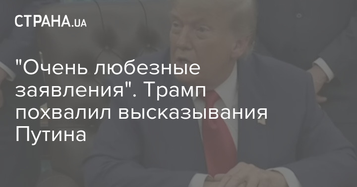 Президент США Дональд Трамп похвалил вчерашние высказывания главы РФ Владимира Путина, который заявил, что относится к президенту США "с большим уважением". Соответствующее видео публикует телеграм-канал "Политика Страны".