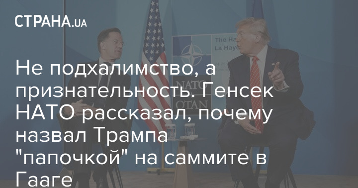 Генеральный секретарь Североатлантического альянса Марк Рютте прокомментировал, почему на саммите в Гааге называл президента США Дональда Трампа "папочкой".