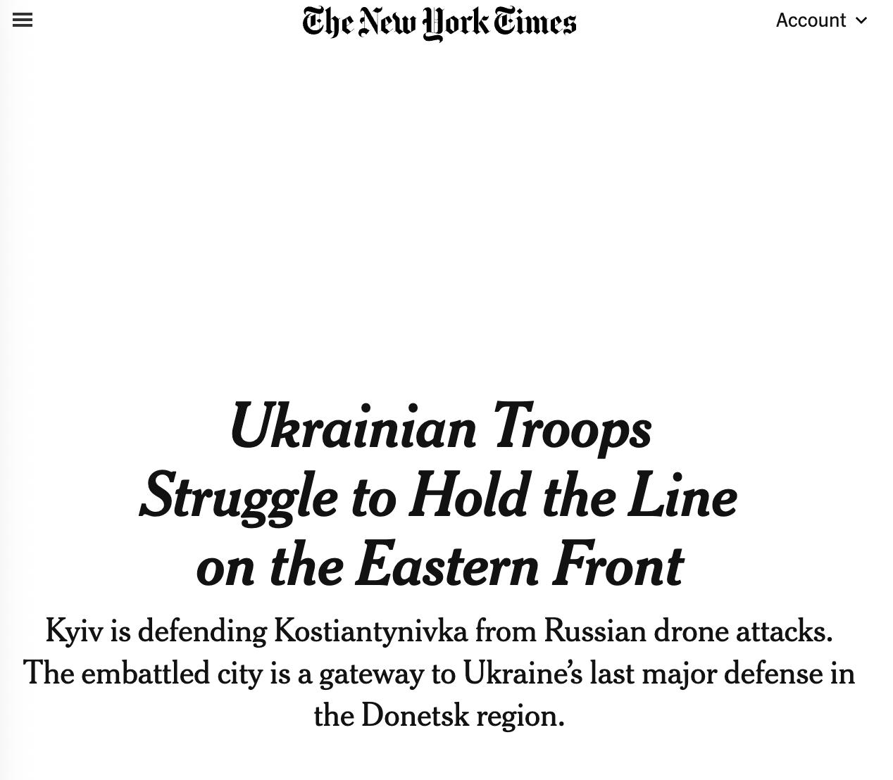 "Город является южными воротами в цепь городов, которые образуют последний крупный оборонительный пояс Украины в Донецкой области. Если он падет, почти все города дальше на север попадут в зону действия российских беспилотников. Это приблизит Москву к ее долгожданной цели - захвату всего Донбасса", - пишет издание.
