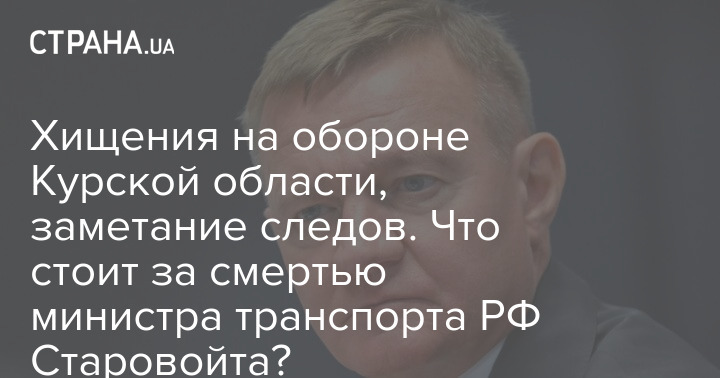 Первая, практически официальная – против него готовились возбудить уголовное дело за провалы в подготовке Курской области к обороне. Старовойт решил покончить жизнь самоубийством. В том числе, чтоб не создавать проблемы членам своей семьи, которая, в случае его посадки, могла бы также потерять многое. Теперь, вероятно, вопросы к ней отпадут.