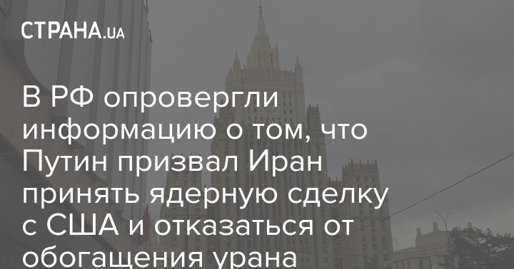 В Министерстве иностранных дел РФ опровергли публикацию Axios о том, что Владимир Путин призвал Иран принять ядерную сделку с США и отказаться от обогащения урана.