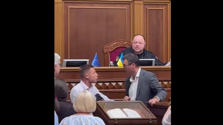 Сегодня 16 июля, народные депутаты Алексей Гончаренко ("Европейская Солидарность") и Даниил Гетманцев ("Слуга народа") устроили потасовку за трибуной Верховной Рады.