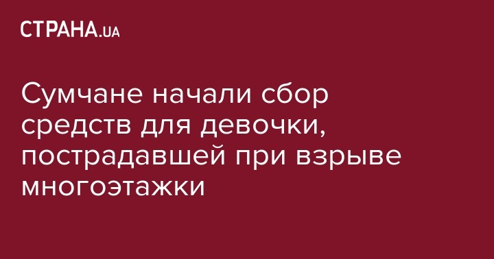 Пострадавшему при взрыве многоквартирного дома в Сумах ребенку срочно нужна помощь. Горожане начали сбор средств для девочки. Об этом написал председатель правления организации "Помоги детям" Борис Кулик на странице в Facebook.