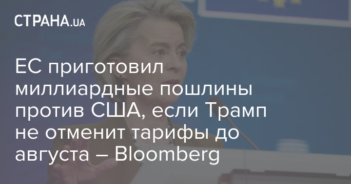 ЕС готов ввести 30% пошлины на товары из США на сумму около 100 млрд евро, если Трамп реализует угрозу об аналогичных тарифах после 1 августа.