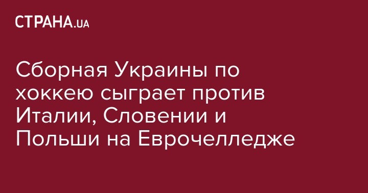 Сборная Украины по хоккею сыграет против Италии, Словении и Польши на Еврочелледже