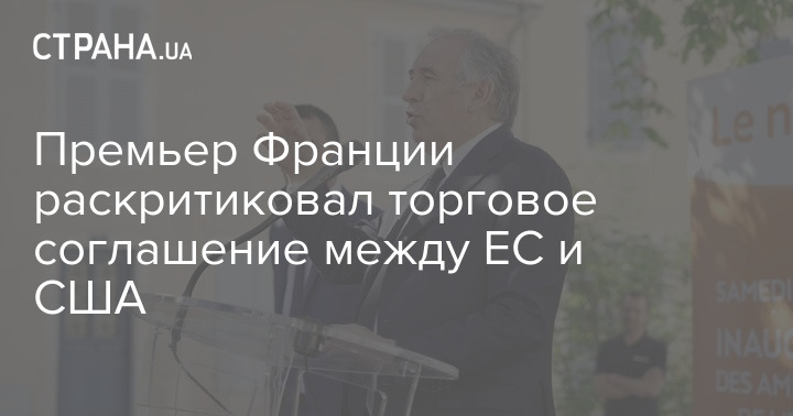 Премьер-министр Франции Франсуа Байру раскритиковал торговое соглашение между Европейским союзом и США.