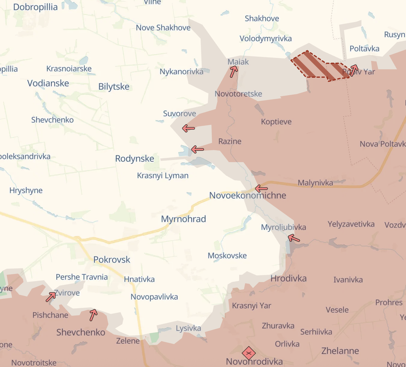 Также россияне продвинулись на север между Константиновкой и Покровском.