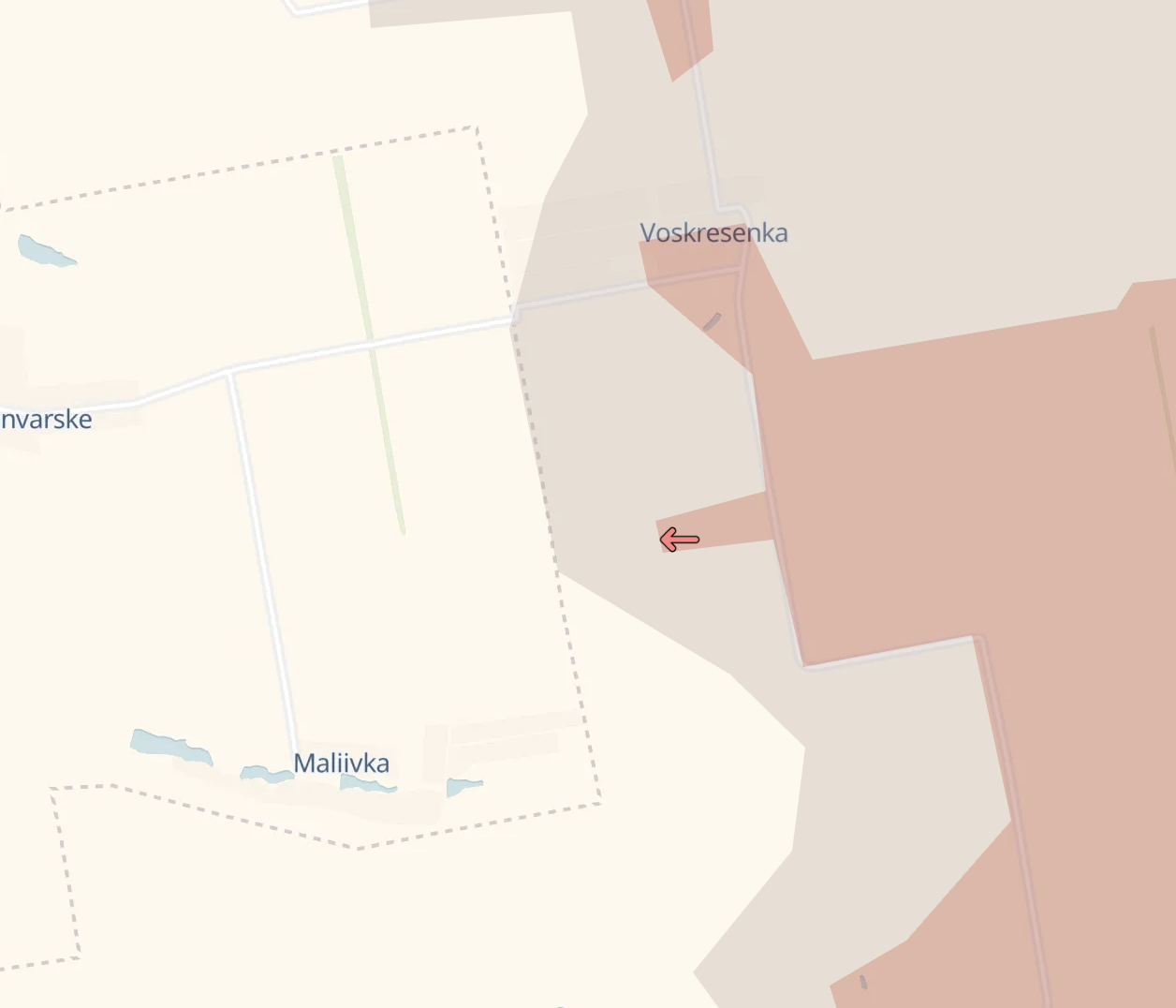 DeepState подтверждает продвижение РФ у границы Днепропетровской области в районе Воскресенки. На карте серая зона там подошла уже подошла к админгранице - то есть там уже идут бои.