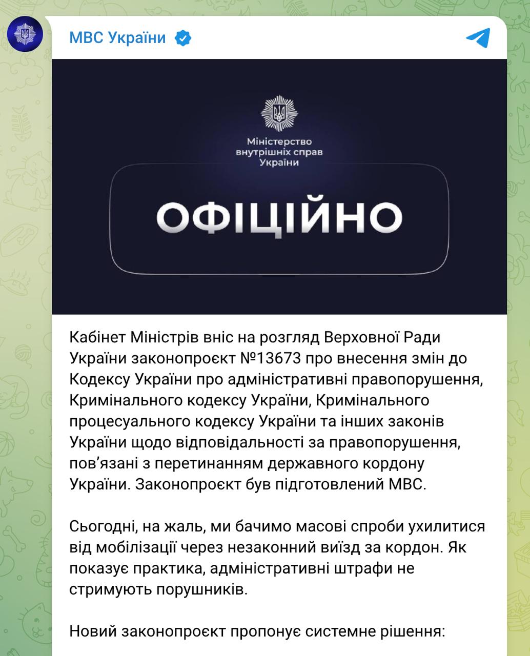 12:51 МВД сообщает, что это оно разработало законопроект об уголовной ответственности за незаконный выезд за границу, внесенный в Раду премьером Свириденко.
