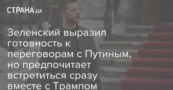 Президент Украины Владимир Зеленский заявил, что готов к встрече с главой Кремял Владимиром Путиным, но предпочитает сразу встретиться втроем вместе с американским президентом Дональдом Трампом.