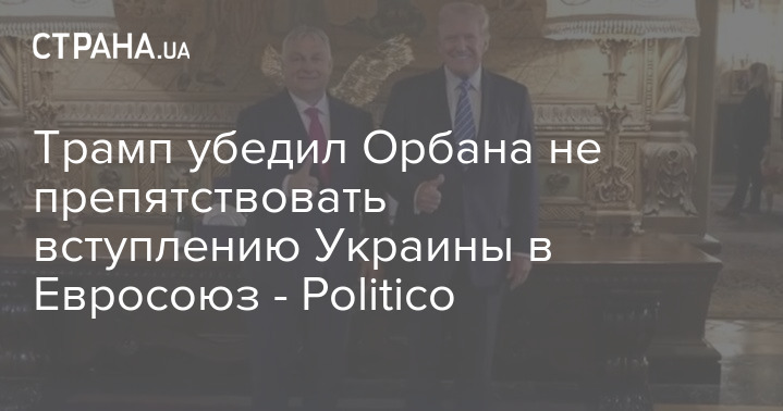 Президент США Дональд Трамп убедил премьер-министра Венгрии Виктора Орбана не препятствовать вступлению Украины в Евросоюз.