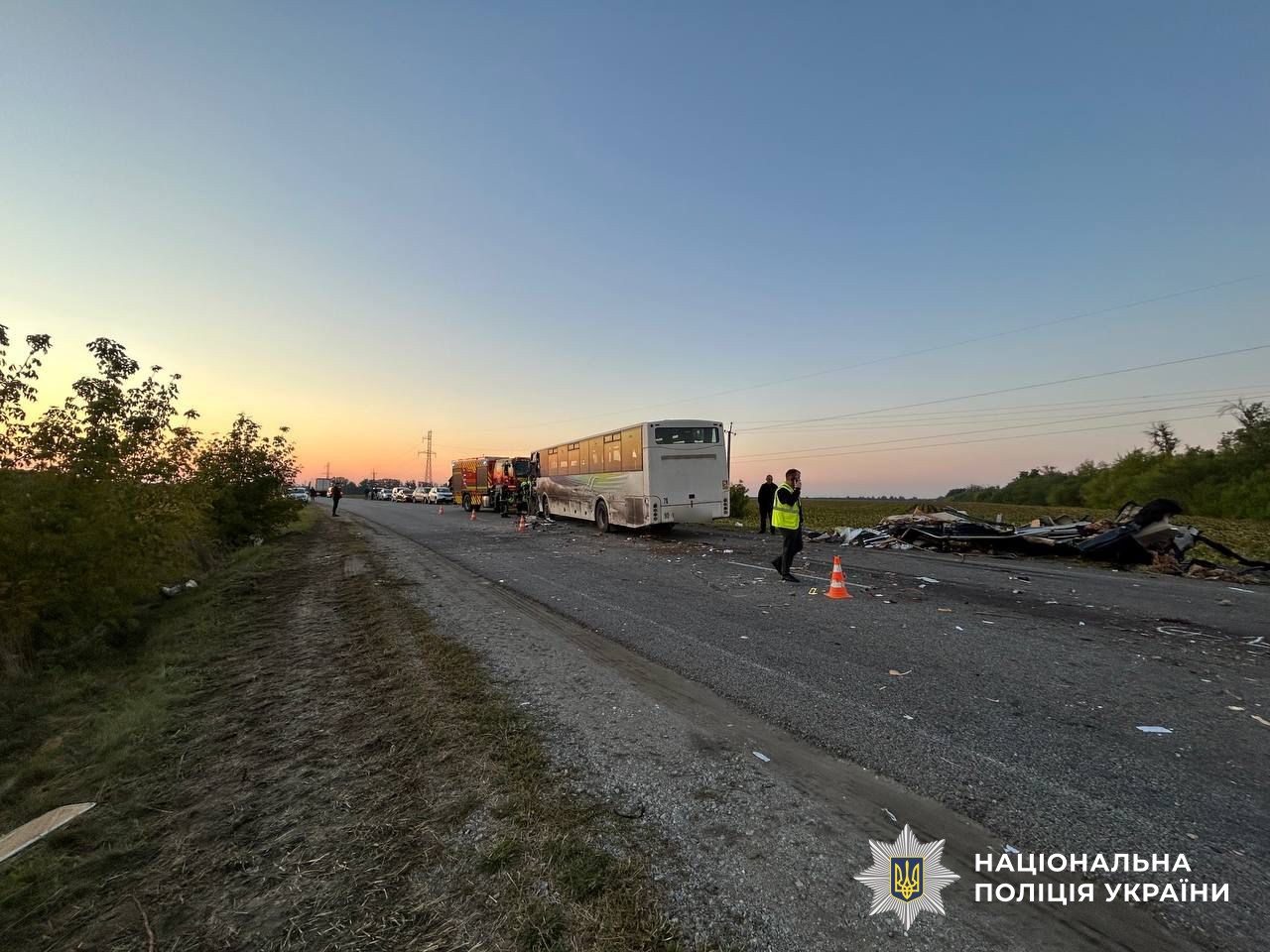 Смертельное ДТП с участием автобуса MAN и микроавтобуса Mercedes-Benz Sprinter произошло возле села Хмелевое Новоукраинского района Кировоградской области. Погибли шесть человек, среди них ребенок. Еще 6 – травмированы, их госпитализировали в больницу.