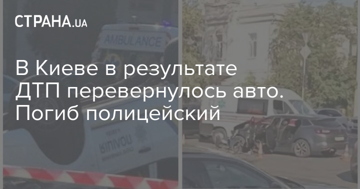 В Киеве на перекрестке столкнулись Renault и служебный Mitsubishi с включенными проблесковыми маячками. От удара служебный автомобиль перевернулся. Погиб полицейский.