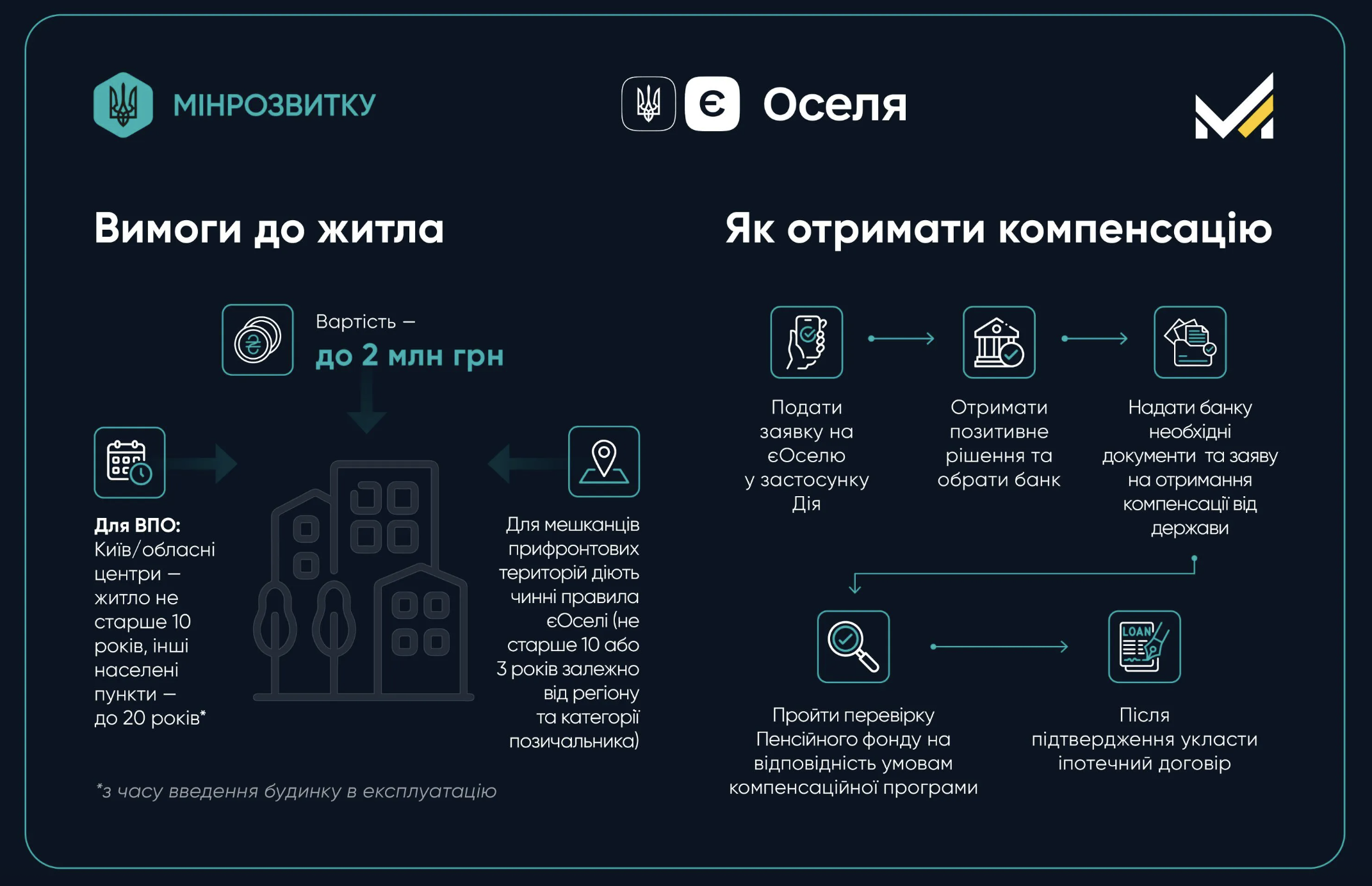 Таким людям будет предоставлена компенсация: до 70% от суммы первого взноса, но не более 30% стоимости жилья, до 70% ежемесячного платежа в течение первого года и до 40 тысяч гривен на сопутствующие расходы, включая страховку.