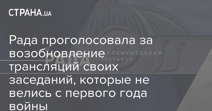 Верховная Рада поддержала постановление № 13719 о возобновлении прямых трансляций своих заседаний, которые не велись с начала войны. Трансляции будут идти на парламентском телеканале "Рада".