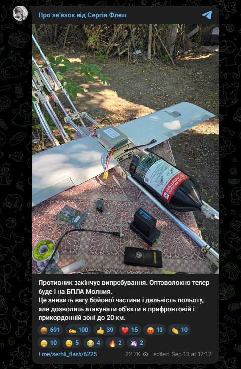 15.50 На вооружении РФ появились оптоволоконные БПЛА "Молния", модели "Молния-2".