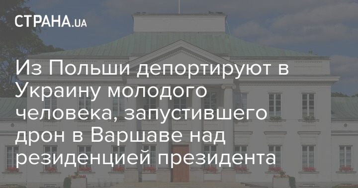 Власти Польши депортируют 21-летнего гражданина Украины, который запустил беспилотник над дворцом Бельведер в Варшаве - одной из резиденций президента страны. На родине его пока не призовут в армию, так как он не достиг 25-летнего возраста.