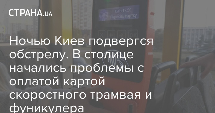 Ночью Киев подвергся обстрелу. В столице начались проблемы с оплатой картой скоростного трамвая и фуникулера