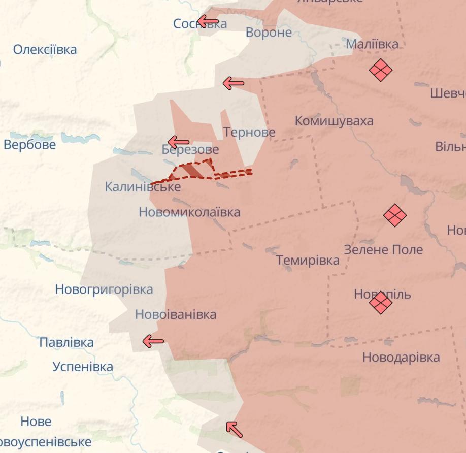 Также российские войска продвинулись в Днепропетровской области около Березового.