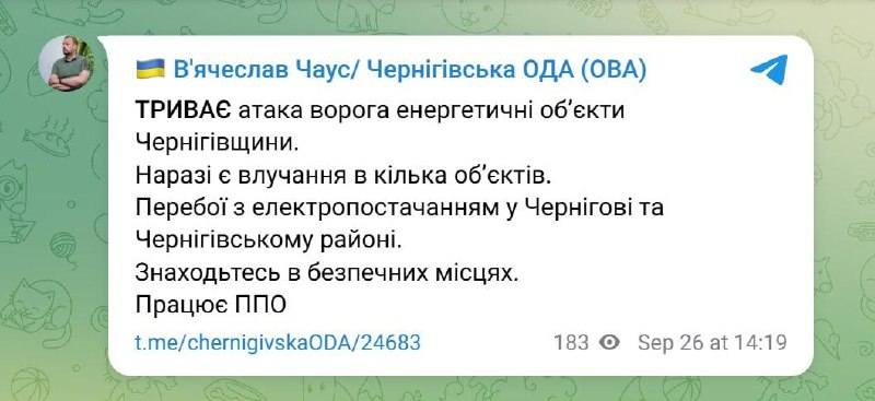 14.27 В Чернигове перебои со светом после прилетов, пишут местные телеграм-каналы.