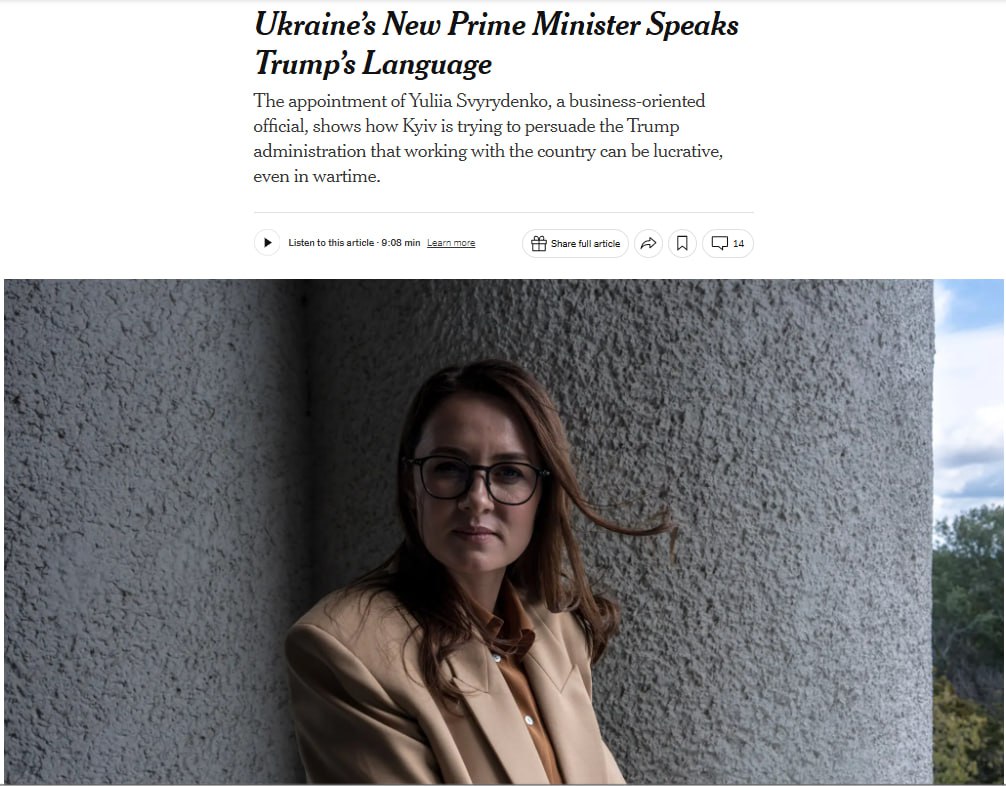 Свириденко, которая стала премьер-министром Украины через пять месяцев после этой беседы, отрицает заявления источников NYT. Она называет результат тех переговоров, благодаря которым Украина и США все же смогли прийти к соглашению, итогом "доверительных рабочих отношений" со Скоттом Бессентом.