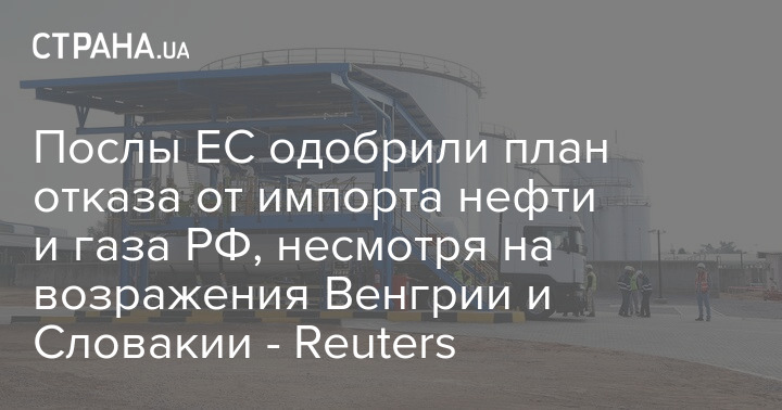 Послы ЕС одобрили план отказа от импорта нефти и газа РФ, несмотря на возражения Венгрии и Словакии - Reuters