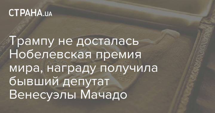 Президент США Дональд Трамп не получил Нобелевскую премию мира. Награду присудили бывшему депутату Венесуэлы Марии Корине Мачадо "за её неустанную работу по защите демократических прав народа Венесуэлы и за её борьбу за достижение справедливого и мирного перехода от диктатуры к демократии".