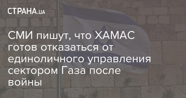 СМИ пишут, что ХАМАС готов отказаться от единоличного управления сектором Газа после войны