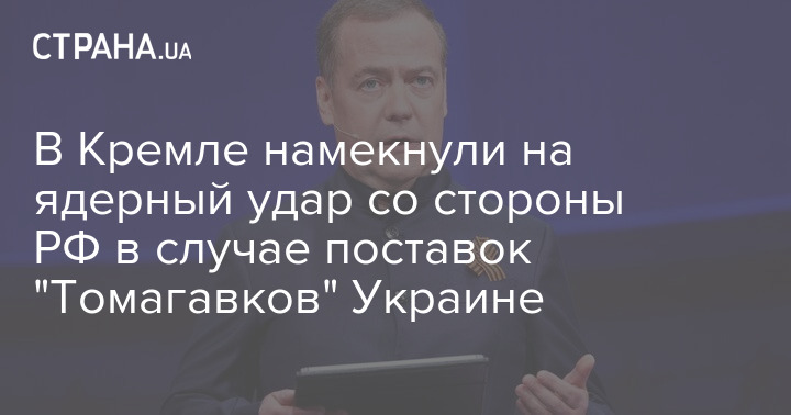 Заместитель председателя Совета безопасности РФ Дмитрий Медведев заявил, что поставки "Томагавков" Украине "плохо закончатся для всех и прежде всего - для самого президента США Дональда Трампа". Таким образом он намекнул на ядерный удар со стороны РФ.