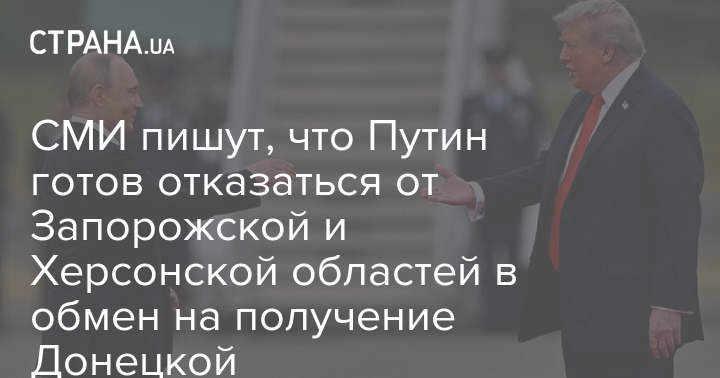 "Во время разговора между Трампом и Путиным российский лидер заявил, что готов отказаться от части территорий двух других регионов Украины, которые он частично захватил - Запорожской и Херсонской областей - в обмен на полный контроль над Донецком, сообщили источники", - пишет газета.