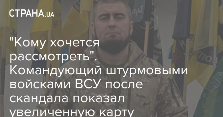 После скандала с засветкой штабной карты с линией фронта новым командующим штурмовыми войсками ВСУ Валентином Манько сам Манько решил прокомментировать это, опубликовав в хорошем разрешении ещё более крупную карту и дописал: "Тем, кому совсем хочется рассмотреть".
