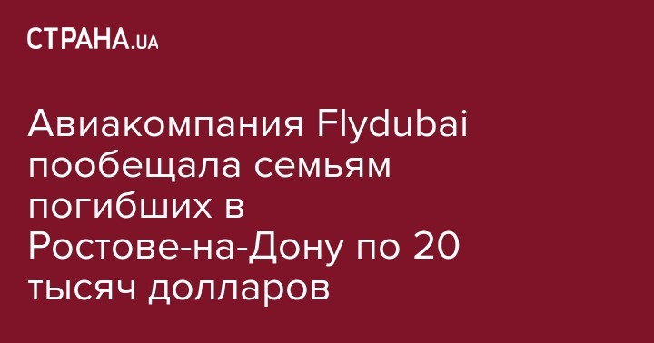Авиакомпания Flydubai пообещала семьям погибших в Ростове-на-Дону по 20 тысяч долларов